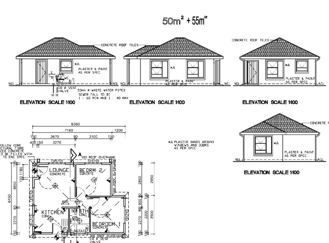 It also includes architectural fees, NHBRC insurance certificate, municipality plans approval fees and the connections of the water and electricity supply to the house.