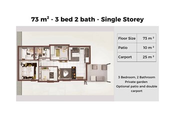 Private garden. Optional patio and double carport.