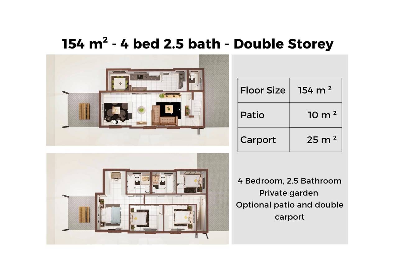 This brand new development in Crystal Park features 2, 3 & 4 bed full-title homes on large stands – 350m2 average. These affordable homes are perfect for young professionals, first-time buyers and families looking for a fresh start without the high price tag. 100% Bond assistance with no transfer costs.