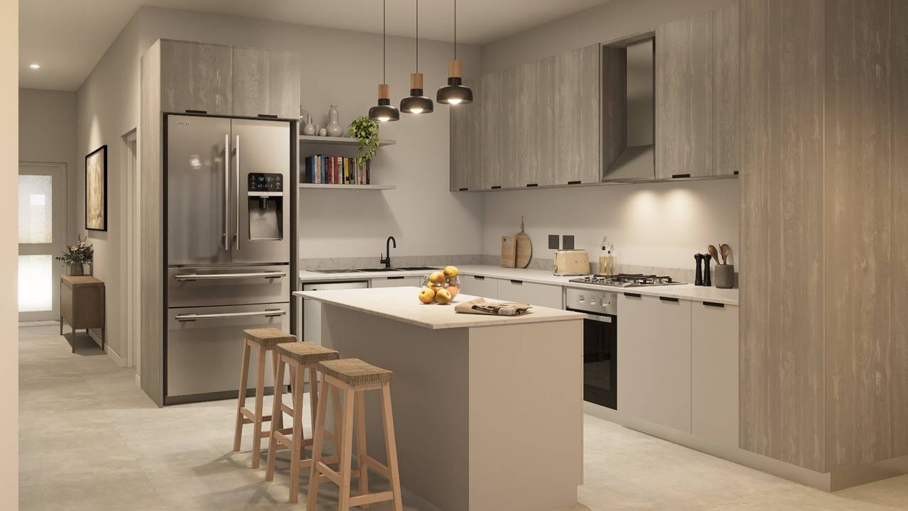 3 Bedrooms Modern open-plan design Kitchen with separate scullery Single garage Parking space in front