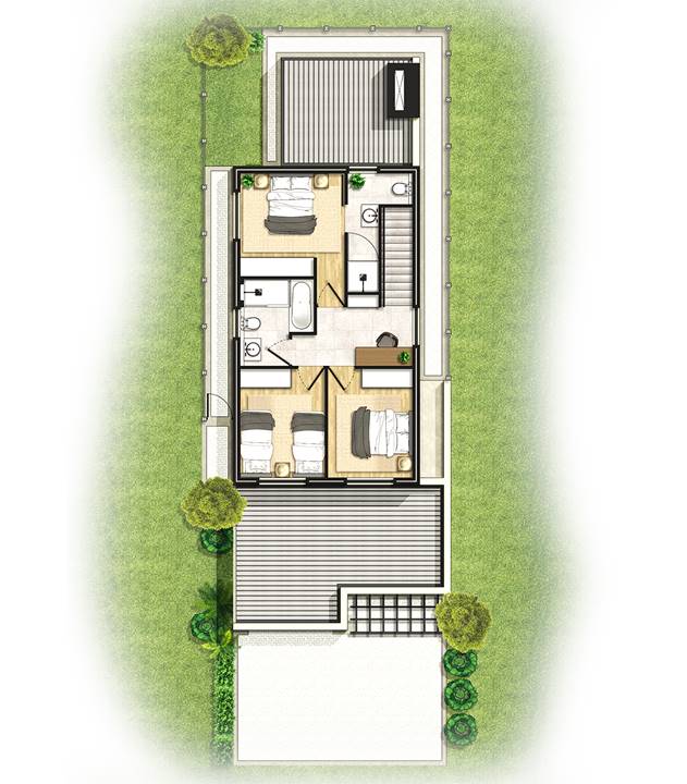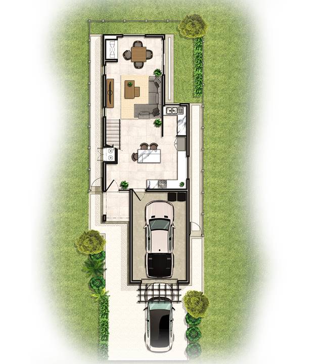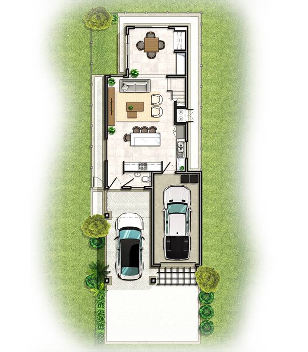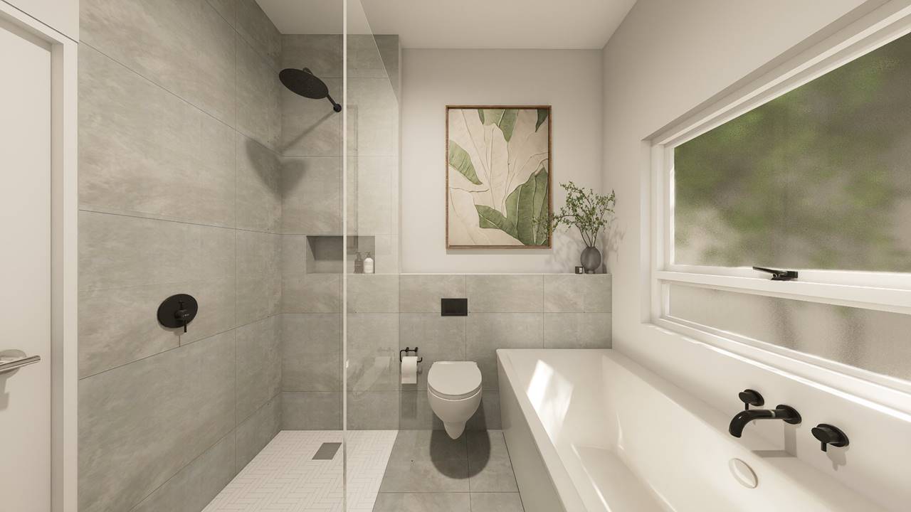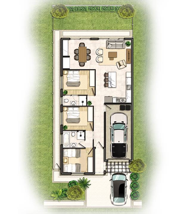 3 Bedrooms Open-plan kitchen and living area Full bathroom plus main en-suite Guest toilet downstairs Single garage Under-roof parking bay Study nook